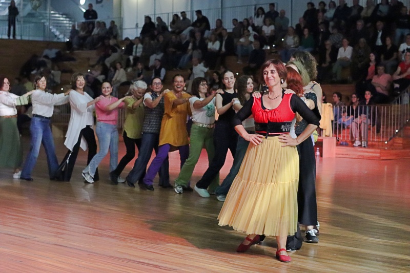 Gabrielle é o nome da tempestade que atravessou Portugal no último sábado, mas em Viana do Castelo, foram outras as protagonistas dessa noite.Na verdade, as mulheres estavam mesmo em maior número no décimo Baile FOLK da Festa da Dança que, apesar do mau tempo, contou com a presença de cerca de 400 pessoas, mas quem brilhou foram as danças tradicionais e, em especial, as portuguesas.Celina da Piedade (cantora, acordeonista e compositora) e Ana Santos que não só nos encantou com o seu violino, mas também com a sua viola campaniça, conduziram o Baile, e Mirjam Dekker, Mercedes Prieto e Mafalda Silva Rego orientaram a Oficina de Dança. Todavia, elas não estavam sozinhas.
