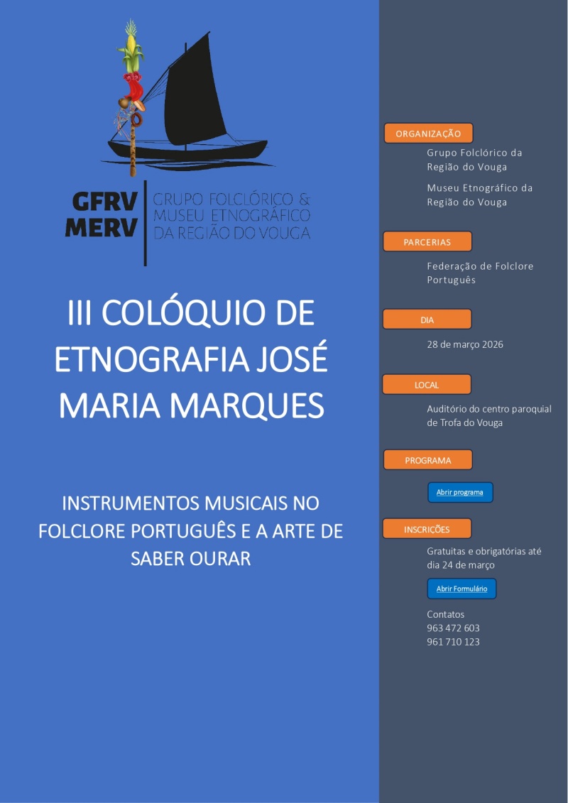 No seguimento do projeto realizado no ano passado, a direção do Grupo Folclórico da Região do Vouga vai realizar o III Colóquio de Etnografia José Maria Marques.