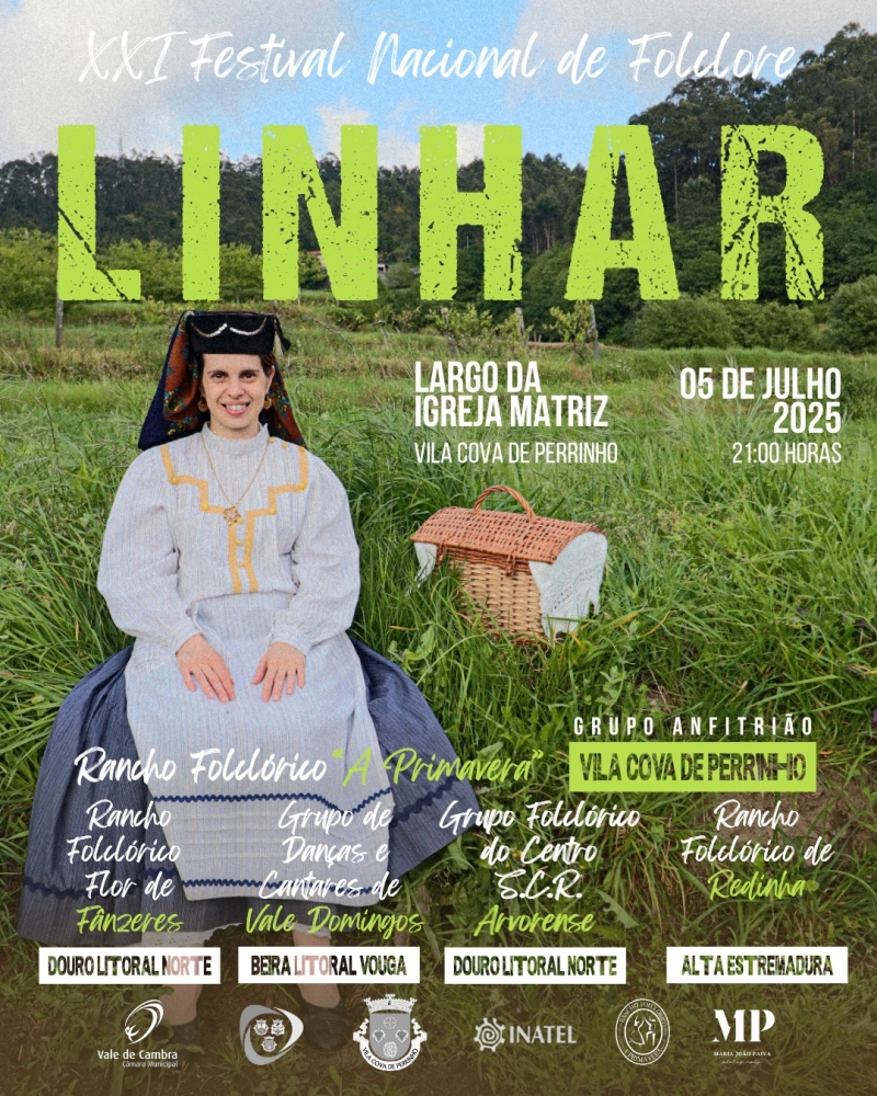 No próximo dia 5 de julho de 2025, pelas 21h00, junto ao Largo da Igreja Matriz de Vila Cova de Perrinho, vai realizar-se o XXI Festival Nacional de Folclore LINHAR.